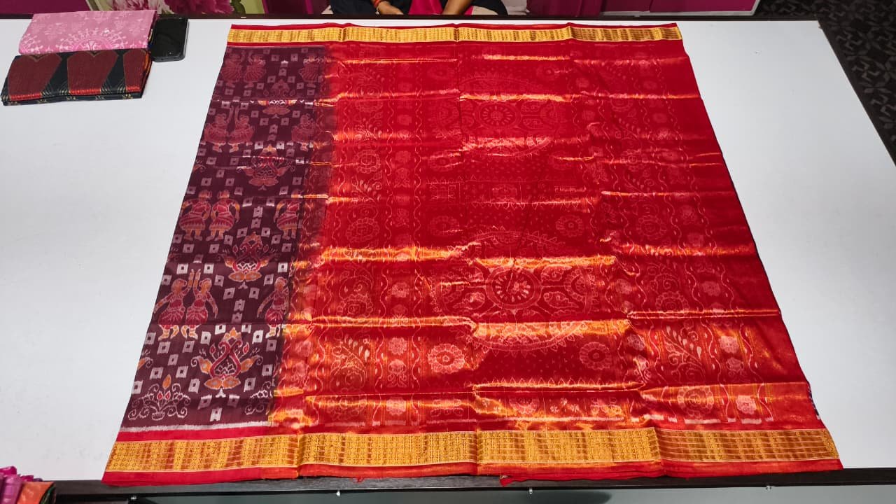 • Color: Deep Red body with Maroon contrast pallu